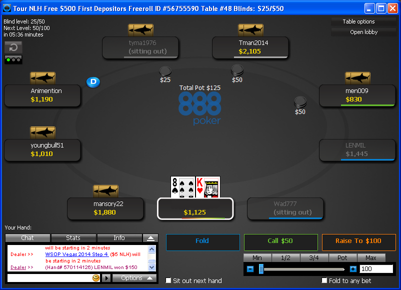 - Играют «боты», имитирующие людей. По официально подтвержденным данным, в руме несколько миллионов активных игроков. 888Poker просто нет нужды выставлять «ботов» для игры. Да и навряд ли заведение будет рисковать репутацией ради нескольких тысяч долларов игрока, когда его доход исчисляется десятками миллионами.