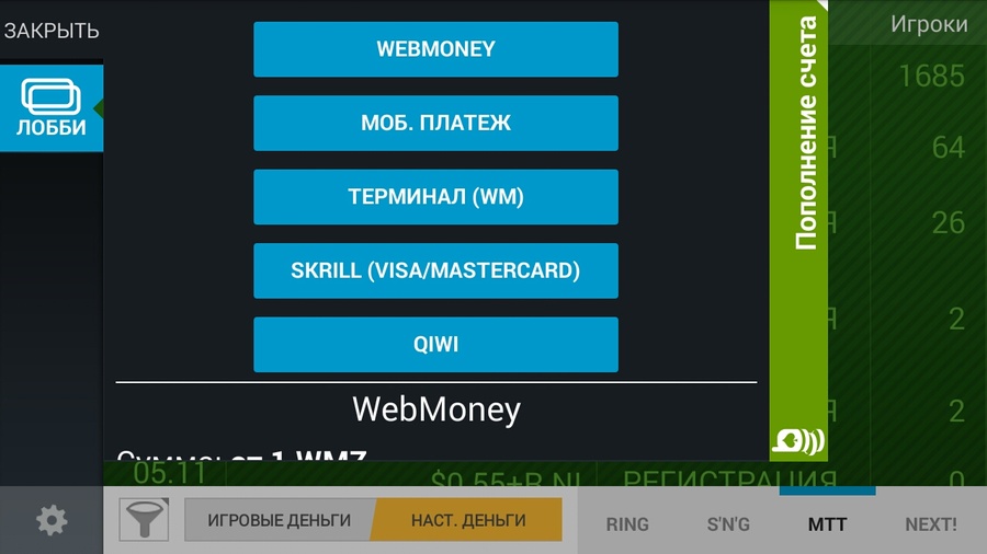 - Большое количество оппонентов, в любое время можно зайти и найти противников на любых типах столов.