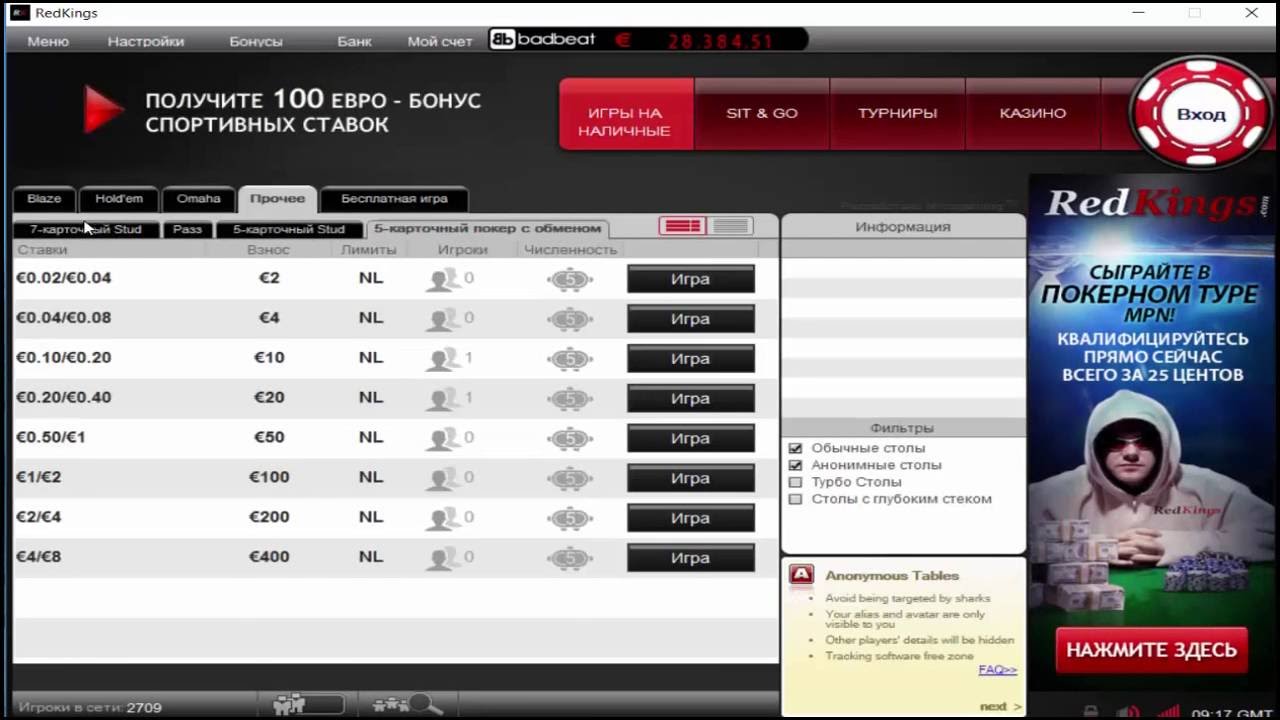 - разнообразные покерные развлечения, среди них 32 дро, Американа, Стад и другие;